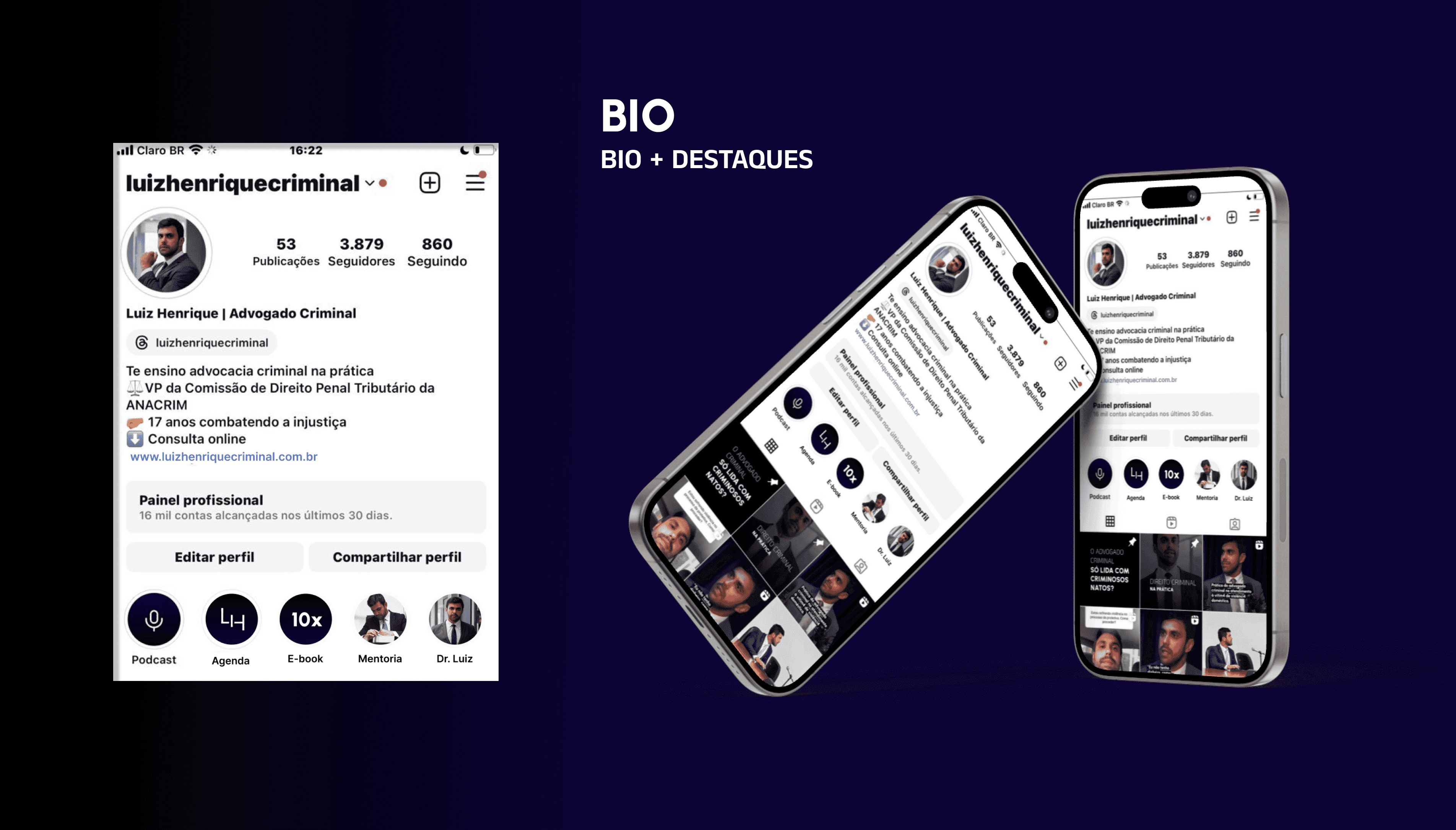 A identidade visual do Dr. Luiz Henrique foi desenvolvida para representar um novo posicionamento dentro da advocacia criminal: firme, estratégico e conectado com a busca pela verdadeira justiça. Fugindo do arquétipo tradicional do advogado “governante”, optamos por uma abordagem mais autêntica e poderosa, unindo os arquétipos do Herói e do Sábio. O resultado é uma marca que transmite força, inteligência e equilíbrio, tudo que se espera de quem atua na linha de frente da defesa.